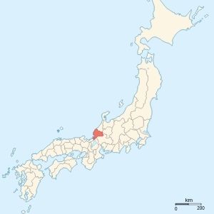 Echizen is a city located in Fukui Prefecture, Japan. As of 1 July 2018, the city had an estimated population of 83,078 in 20.341 households and the population density of 360 persons per km². The total area of the city was 230.70 square kilometres (89.07 sq mi). The modern city of Echizen was established on October 1, 2005, from the merger of the city of Takefu and the town of Imadate (from Imadate District); although the Echizen Basin has been an important regional center for over 1,500 years. The city is home to the largest number of cultural assets in Fukui Prefecture and has many former castle sites and prehistoric archeological sites.
